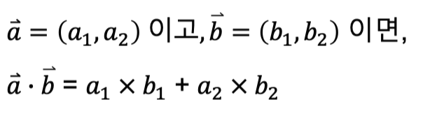 - 두 벡터가 같은 방향이면 두 벡터의 내적은 최대값을 갖습니다.