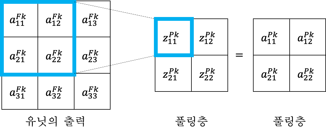 압축한 유닛의 모임으로 풀링층을 형성합니다.