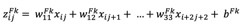 합성곱에 대해서 i, j에 의존적이지 않은, 각 필터의 고유한 편향 b를 더해서 가중입력 z를 생성합니다.