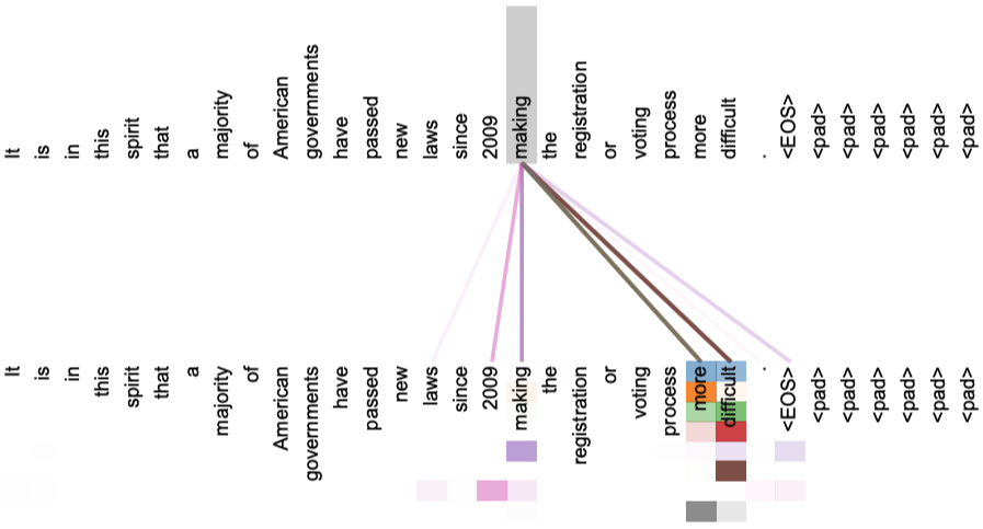 - Encoder-decoder attention : Key/value는 encoder의 결과로, query는 decoder의 이전 층을 이용해서 attention을 수행한다. Decoder가 Encoder의 모든 입력과 직접 연결될 수 있다.