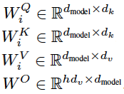 이 논문에서는 h = 8 만큼 층을 이용해서 병렬처리를 했다. 또한 $ d_k = d_v = 64 $ 으로 지정했다. 차원이 줄어 들었기 때문에, 기존의 차원을 그대로 사용한 single-head attention 과 연산 비용이 비슷하다.