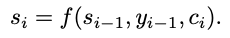 이후에는 [식-4]와 동일한 방법으로 time $ i $ 에서의 decoder RNN의 hidden state $ s_i $ 를 계산한다.