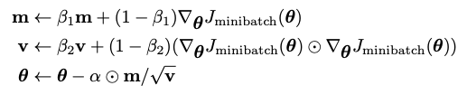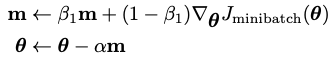 이번에 새로 다뤄볼 Adam optimizer 의 경우 다음과 같은 식을 만속시키면서 학습을 진행한다. $ \beta $ 값은 0에서 1 사이의 (보통 0.9를 사용한다) 하이퍼파라미터로 사용한다.