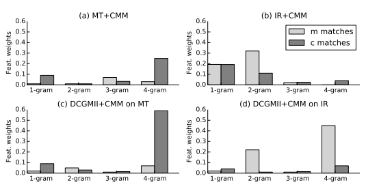 - CMM : MT 와 IR은 문맥을 고려하지 않는다. 문맥을 고려하기 위해서 context and message matches (CMM) 을 사용한다. ( $ c, m, r $ 사이의 exact match) 총 8개의 feature를 정의한다 : $ c $ 와 $ r $ 사이의 1~4-gram match (4개) + $ m $ 과 $ r $ 사이의 1~4-gram match (4개) 이러한 exact match 는 response에서 문맥 정보를 반영하는데 도움을 준다.