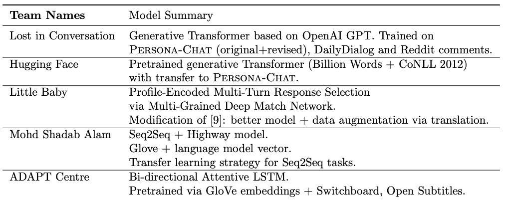 최종 결과에서 2등을 한 huggingface팀의 대화 모델에 대한 논문은 여기에서 읽어볼 수 있다. (TransferTransfo)