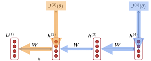 위 그림에서 $ h^1 $ 의 관점에서 보겠다. $ J^2 $ 에 대한 gradient의 값은 $ J^4 $ 에 대한 gradient값 보다 훨씬 클 것이다. 그러므로, $ h^1 $ 은 $ J^2 $ 에 맞게 학습될 것이다. 다른 말로 표현하면, 파라미터들은 가까이에 위치한 dependency에 맞게 학습하고, 멀리 떨어진 dependency 에 대해서는 학습하지 못한다는 뜻이다.